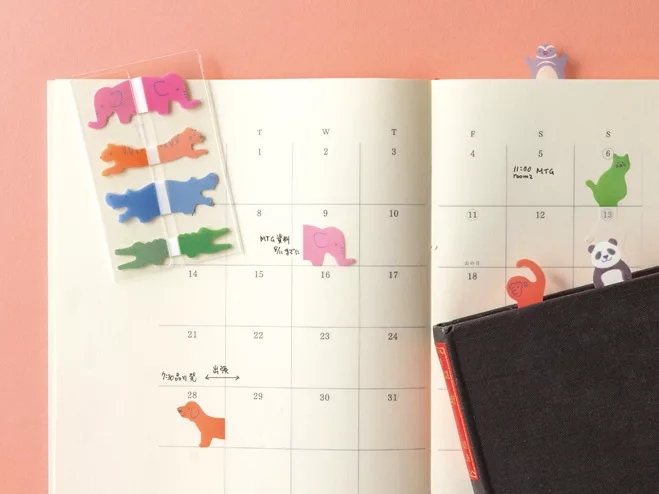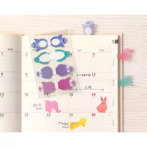 貼在筆記本或手帳上作為翻頁的索引,看到小動物們半身躲藏在紙頁間,